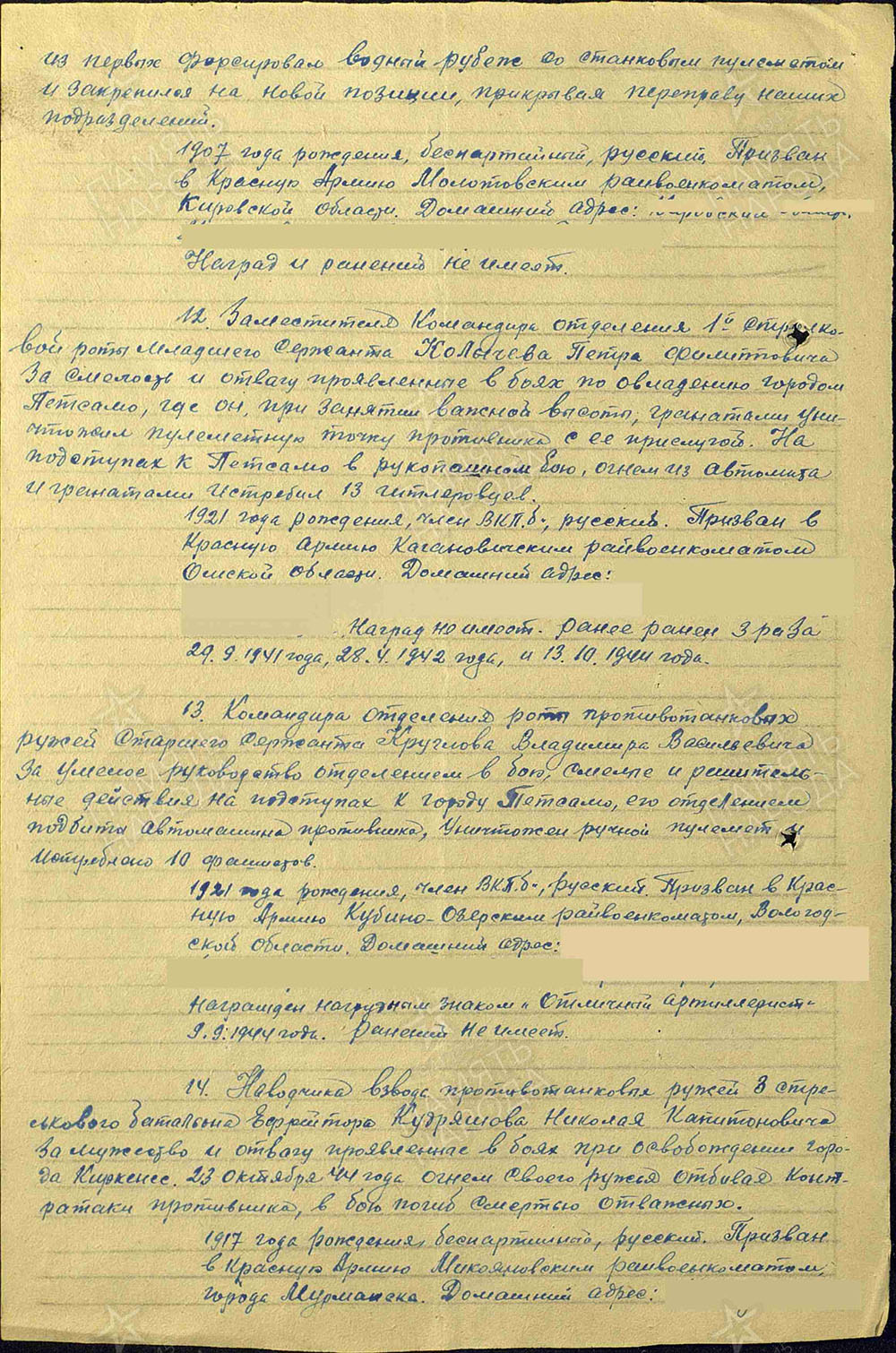 Дата и место призыва: 23 июня 1942 года, Мурманск