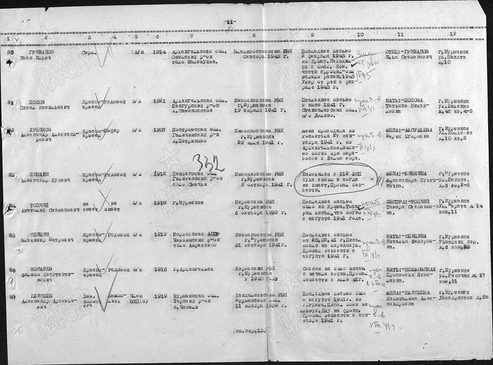 Пропал без вести, связь с бойцом прервалась в ноябре 1941 года