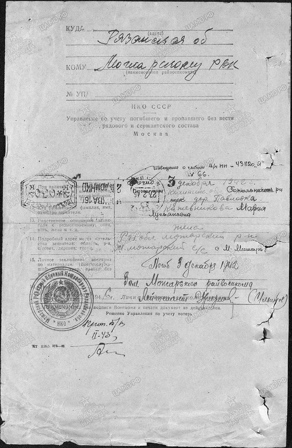 Письма с фронта очень бережно хранятся в семье. Самое запоминающее в этих письмах то, с какой нежностью и теплотой он обращался к своей жене, о войне и её трудностях не было ни одного слова. Во всех письмах концовка была чуть разная, но обязательно со словами: «Я тебя и деток очень люблю, береги их и сохрани всеми силами …»
