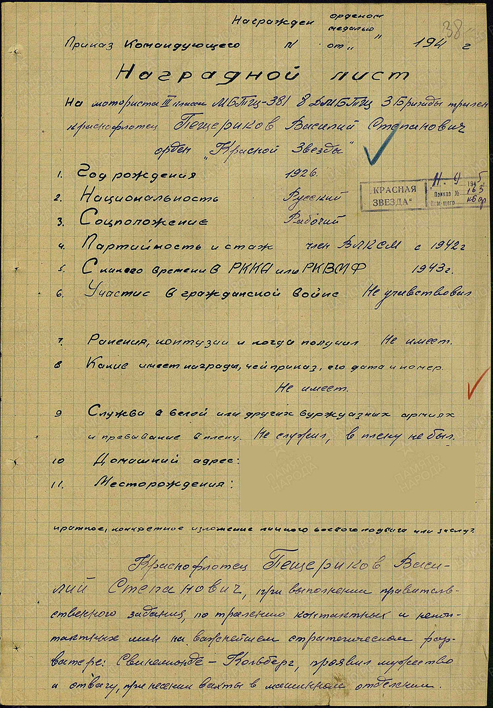 Призван 17 апреля 1943 г.